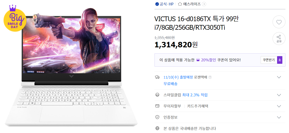 | HP | 빅터스16 | i7-11800H | RTX3050Ti | 8GB 램 |