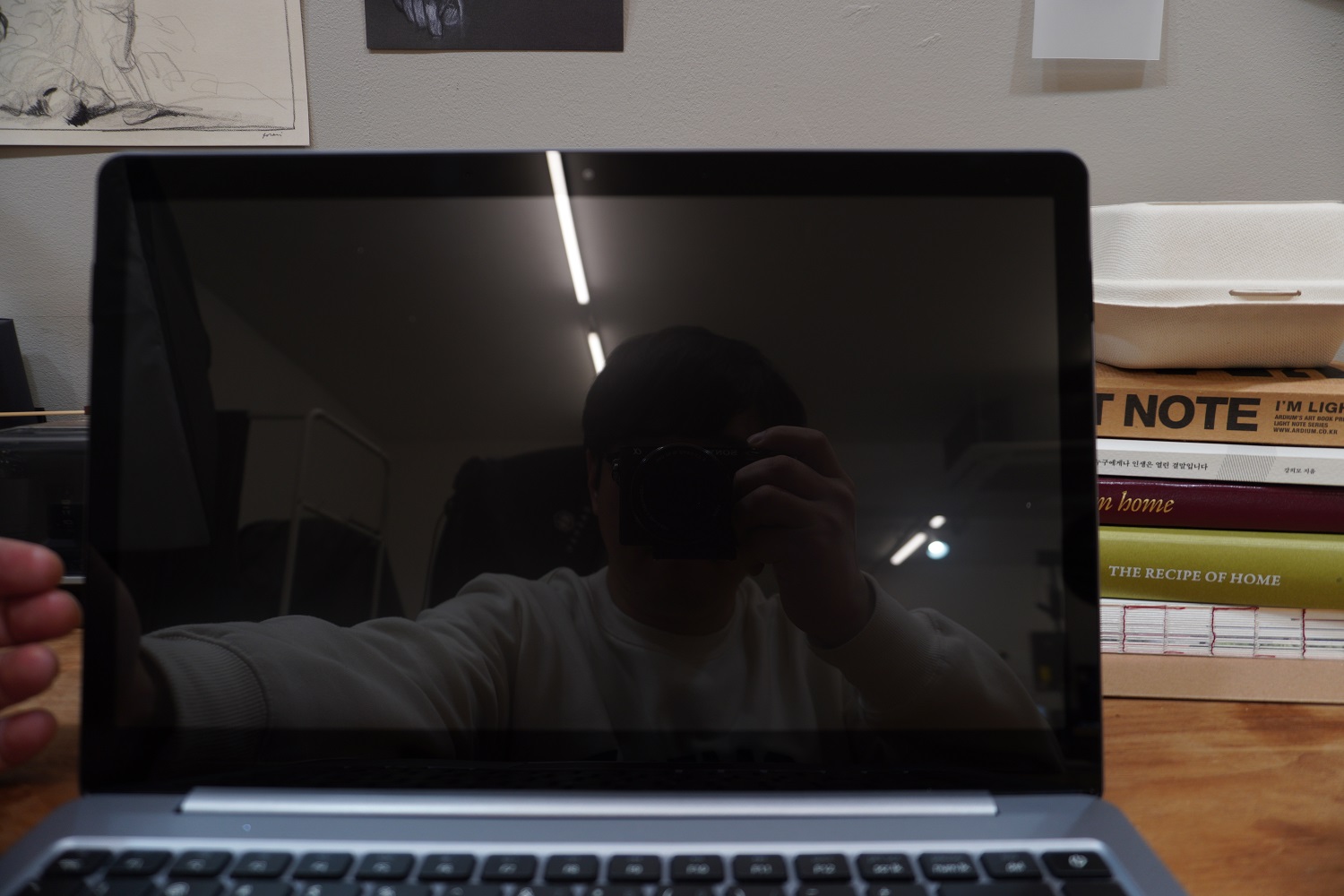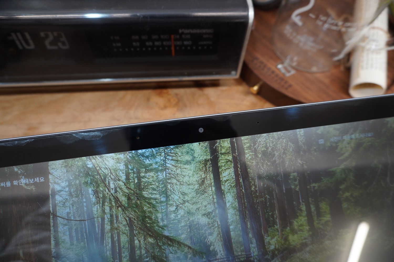 최대 밝기가 250nits 정도이고 빛 반사가 있는 글로시 패널이라는 점이 살짝 아쉽지만, 생각보다 실내에서 시인성이 나쁘다고 느껴지지는 않았습니다. 글로시 패널은 호불호가 갈릴 수 있는 요인이긴 한데, 얼핏 보면 노트북이 괜히 고급스러워 보이는 효과도 있어서 나쁘지는 않다고 생각해요.