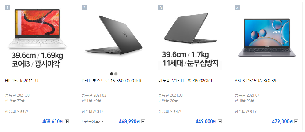 셀러론 프로세서보다 성능이 좋은 i3, 혹은 라이젠3가 탑재된 저가형 노트북들은 보통 가격이 40만원대 정도입니다. 솔직히 셀러론은 성능이 많이 떨어지기 때문에 저는 대부분의 상황에서 10만원 정도는 더 투자하는 것을 추천해 드리는 경우가 많은데, 베이직북 13은 그나마 디스플레이가 더 좋다는 장점이 있으니 조금 저울질해 볼 수 있는 요소가 있다고 보시면 될 것 같아요.