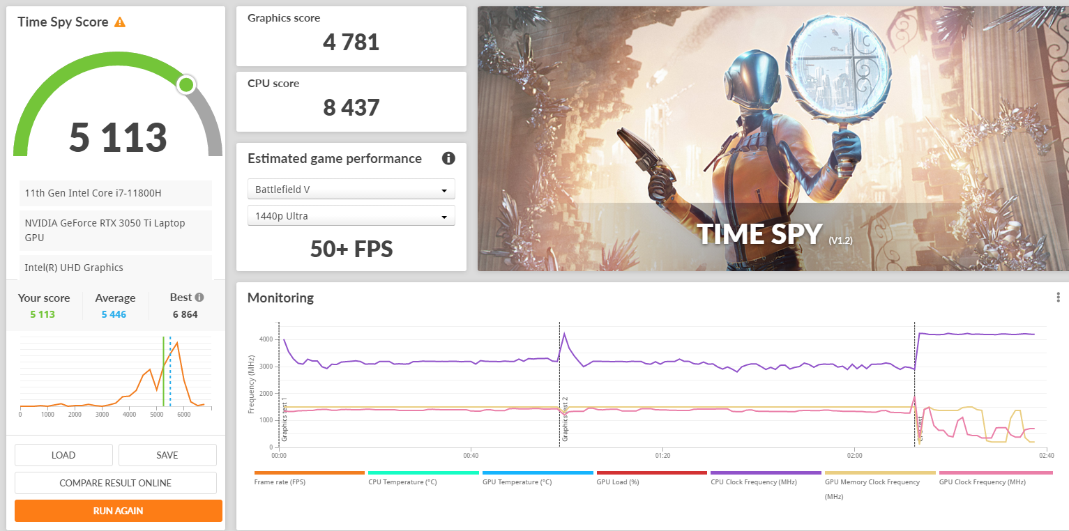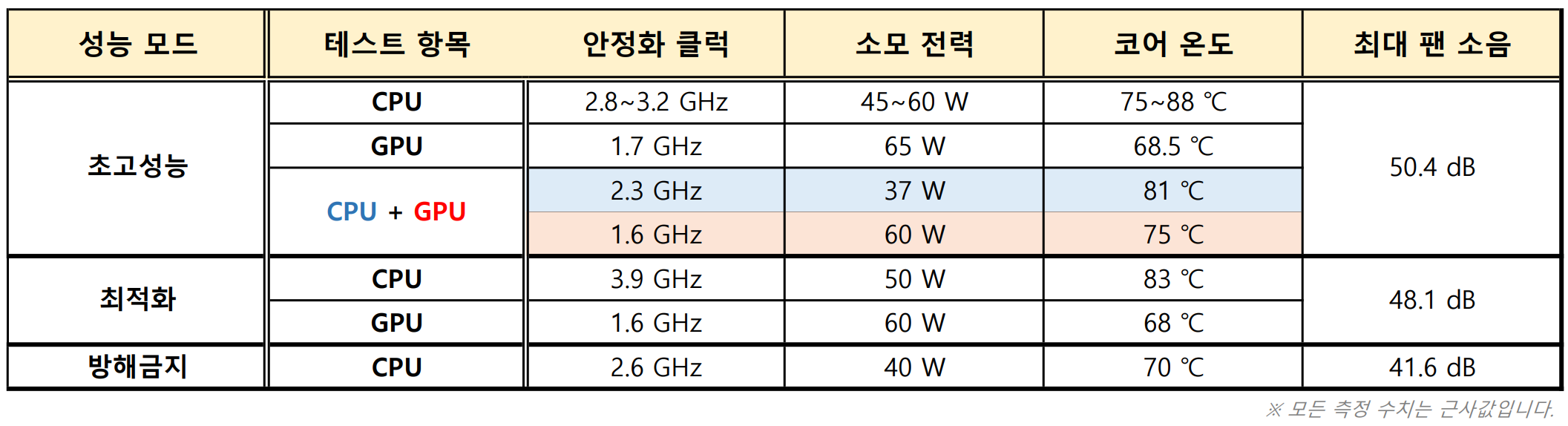 솔직히 이 정도만 하더라도 고성능 노트북 중에서도 충분히 좋은 점수이고, GPU 성능에 조금 더 비중을 두면 게임 성능은 오히려 조금 더 좋게 나올 수 있으니 꼭 나쁜 것은 아니죠. 어찌 됐건 노트북이 감당 가능한 총전력량은 체급 대비 좋은 편이니까요.
