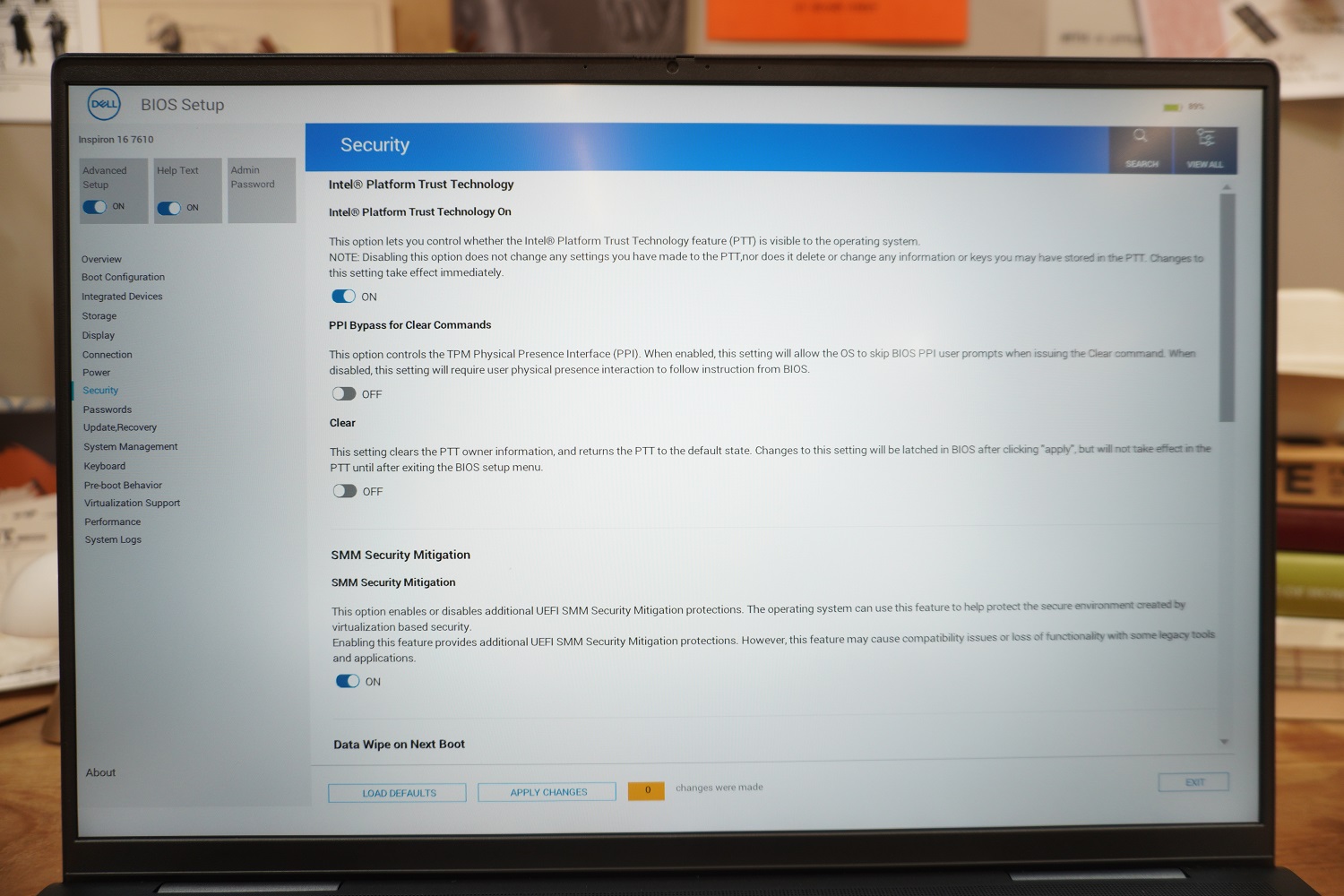 델 노트북은 대부분 바이오스 메뉴를 통해서 기본 성능모드 조절, 배터리 충전 제한, 디스플레이 기본 밝기 등 다양한 설정을 해줄 수 있습니다. 인터페이스도 깔끔해서 바이오스 조작에 익숙하지 않은 분들도 쉽게 다룰 수 있을 거예요.