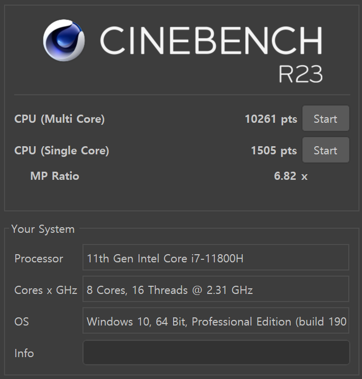 타이거레이크 CPU가 전력 효율이 좋지 않기로 유명한데, 45W급 H프로세서 시리즈는 생각보다 전성비가 나쁘지 않더라고요. 타이거레이크 세대 끝물에 나와서 기존에 안 좋았던 이미지를 그대로 물려받아서 개인적으로 안타깝게 생각하는 시리즈이긴 합니다.