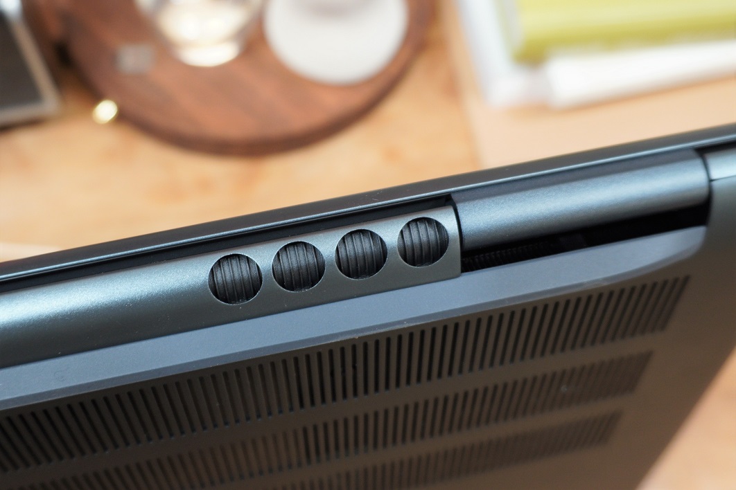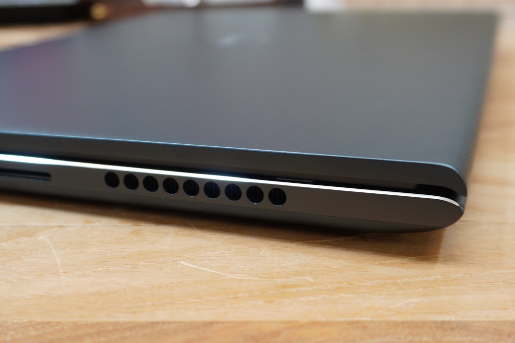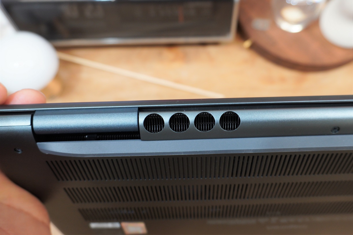 인스피론15 모델과 마찬가지로 스피커가 하단 지향성이지만 음질 자체는 노트북 치고는 상당히 좋은 편입니다. 참고로 키보드 상단에 있는 타공 구멍은 스피커 그릴이 아니니 상단 지향성을 기대하진 마시고요.