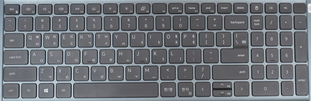 일단 4열 넘버패드가 포함된 구성이어서 수치 입력이 많은 엑셀, 도면 작업을 하시는 분들은 마음에 들어하실 것 같아요. 그런데 개인적으로 Home, End 버튼이 Fn+F11/F12 조합에 배정되어 있어서 사용하기가 불편하더라고요. 넘버패드 위에 계산기 전용 키들이 할당되어 있는데 그 자리에 Home, End, Pg Up/Dn을 넣어줘도 되지 않았을까 하는 아쉬움이 남습니다.