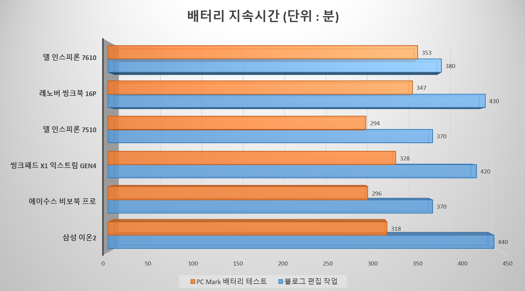[ 배터리 상태에서의 성능 차이 ]
