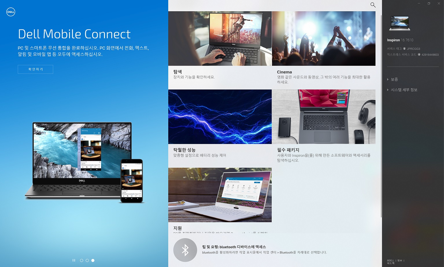 인스피론15 리뷰에서도 언급했지만, 최근 델의 자체 소프트웨어 완성도도 많이 좋아졌습니다. 여러 가지 앱들의 기능을 My Dell 소프트웨어로 통일하면서 성능 설정, AS 신청 등 다양한 작업을 하나의 프로그램으로 직관적으로 사용할 수 있더라고요.