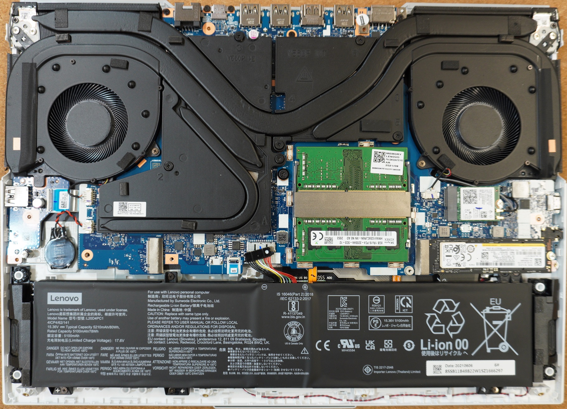 대부분의 게이밍 노트북이 CPU에 45~65W, GPU에 80~130W 정도 유지할 수 있다는 점을 감안하면 리전5i 프로는 이 평균치를 상회합니다. 성능 잘 뽑아내기로 유명한 MSI의 GP76 모델이 CPU에 최대 75W, GPU에 최대 140W 공급 가능한 설계였으니 리전5i 프로도 총 쿨링 용적은 비슷하다고 볼 수 있겠죠. (리전5i 프로는 CPU 85W + GPU 130W)