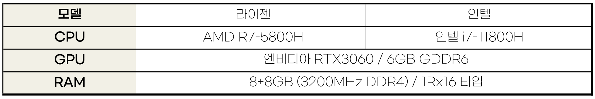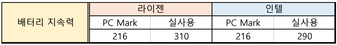 2) 노트북의 내부 설계와 무관하게 대체로 큰 편차 없는 성능을 원한다면 라이젠 CPU