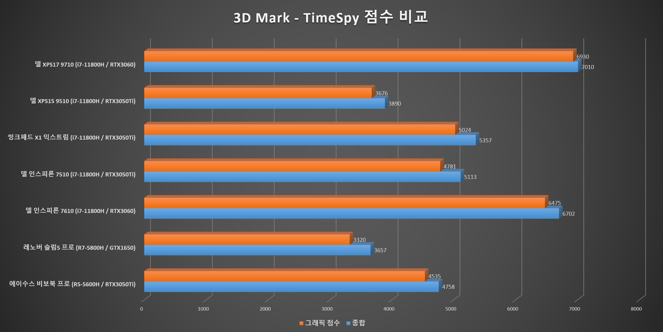 | 3D Mark TimeSpy | 3979 | 3890 | 6321 | 7010 |
