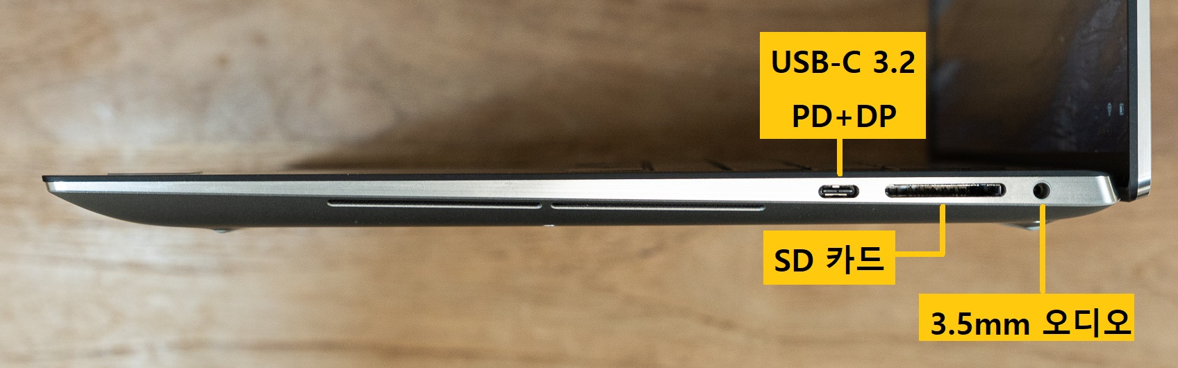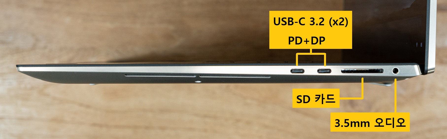 XPS는 과거의 맥북 프로 시리즈처럼 노트북을 얇게 만들기 위해서 포트 편의성을 조금 포기했습니다. 측면 두께가 얇다 보니 HDMI나 USB-A는 아예 없고, USB-C와 3.5mm 오디오, SD카드 슬롯이 전부입니다. 다행히 각 포트의 성능 자체는 좋아요. 모든 USB-C 포트가 PD 충전과 디스플레이 출력이 지원되기 때문에 확장 허브나 충전기를 어떤 방향으로 연결해도 되기도 하고, SD카드 슬롯도 90MB/s 속도까지 지원돼서 4K 영상 전송 용도로 사용하기에도 문제없었습니다.