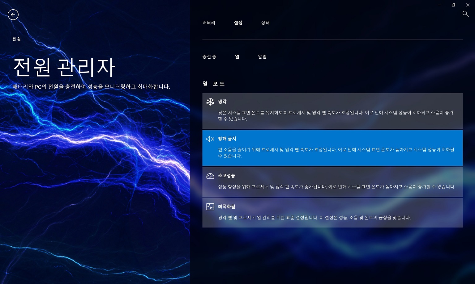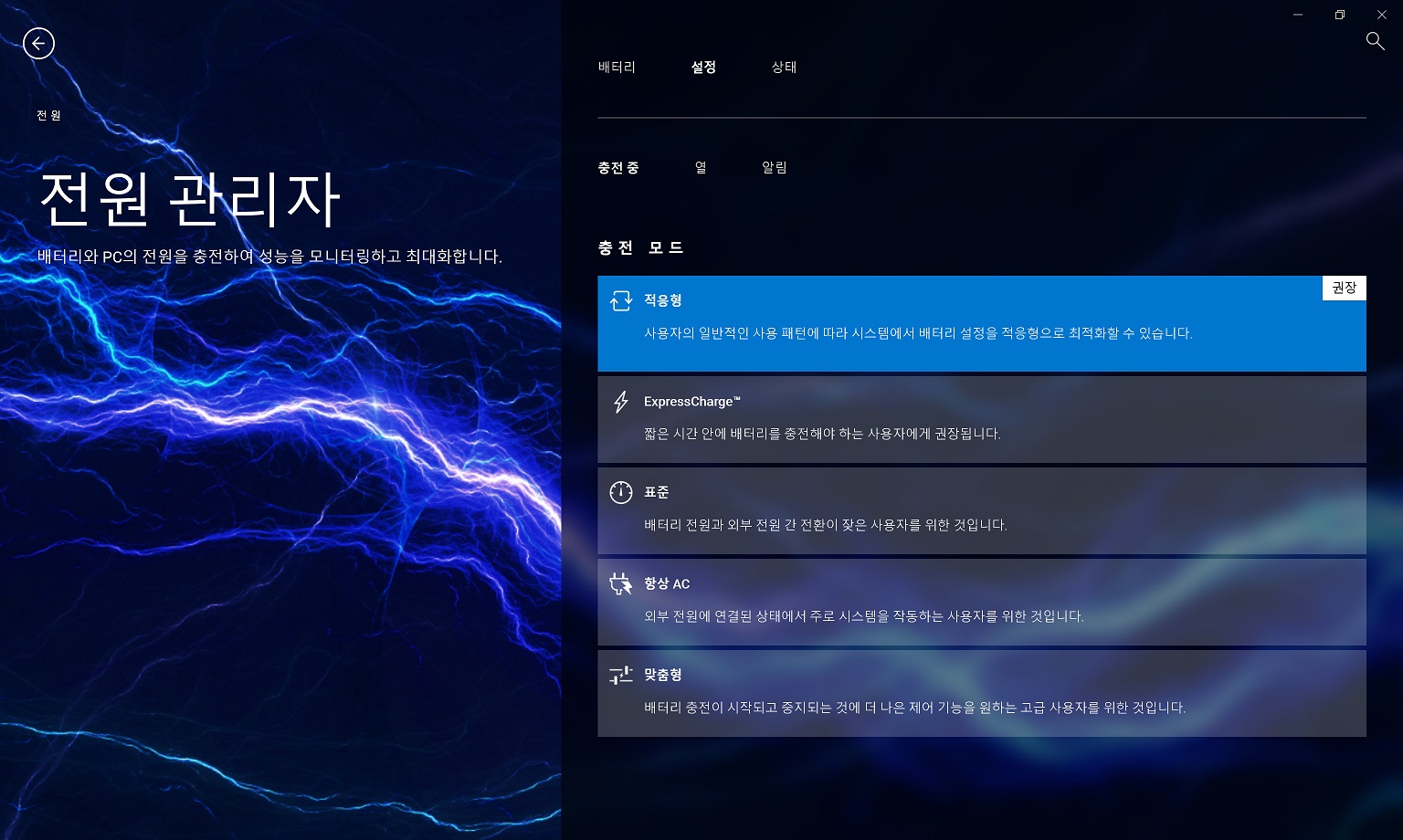 최근에 출시된 델 노트북은 모두 공통적으로 "My Dell"이라는 소프트웨어로 드라이버와 배터리, 전력 관리를 할 수 있게 통합됐습니다. 인터페이스도 나름 직관적이고 충전 제한, 성능 모드나 피크 전력 설정 등 기능도 다양해서 노트북 사용에 익숙하지 않은 초보자도 쉽게 적응할 수 있는 구성이에요.
