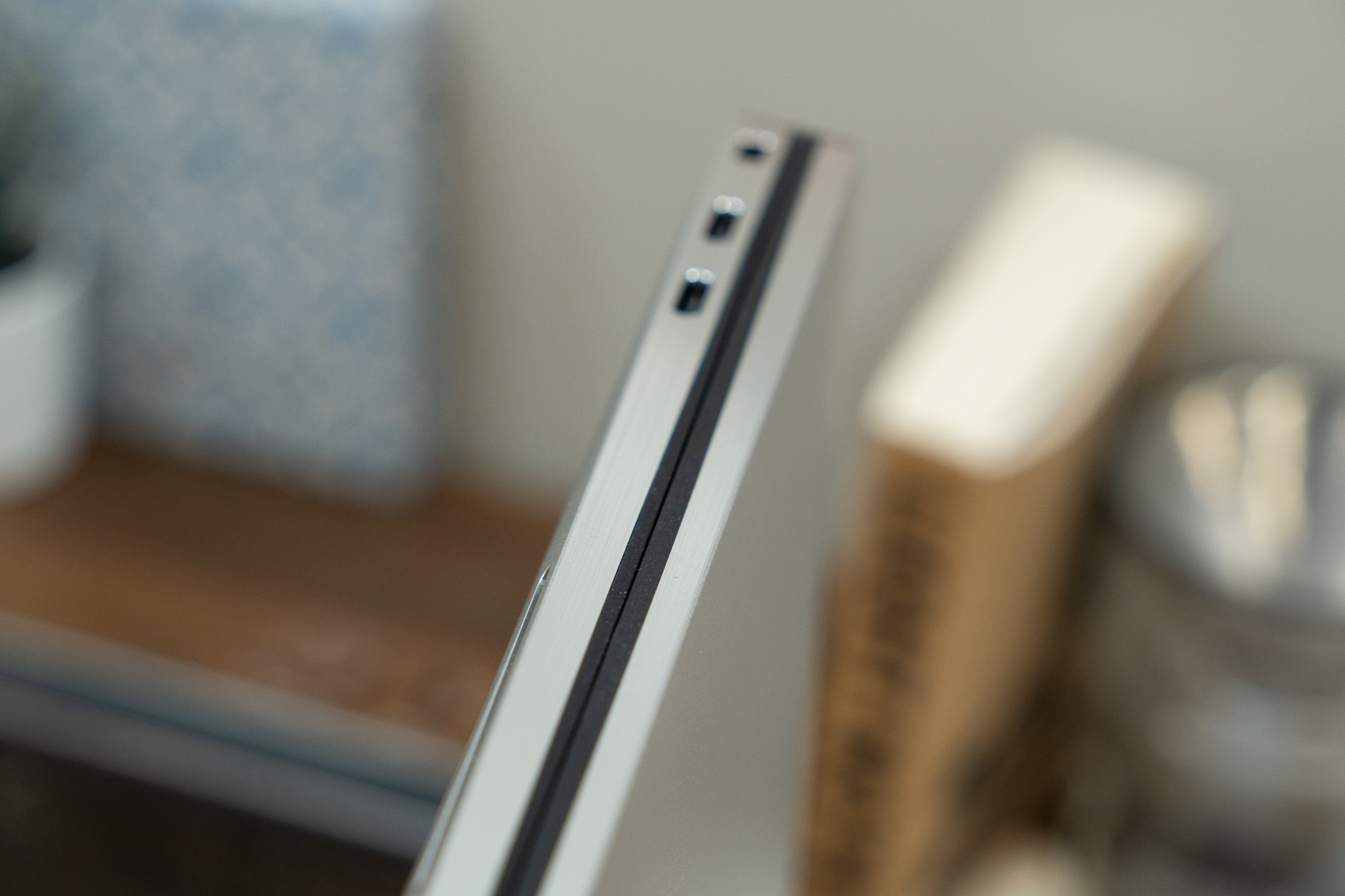 그리고 노트북이 닫혀 있을 때 유격이나 단차가 워낙 없어서 디스플레이 틈 사이에 손을 넣는 것이 살짝 어려운 편이어서 가끔 급하게 노트북을 열어야 되는 상황에서는 불편하더라고요. 오히려 유격 없는 깔끔한 마감이 이런 때에는 방해가 되기도 하네요.
