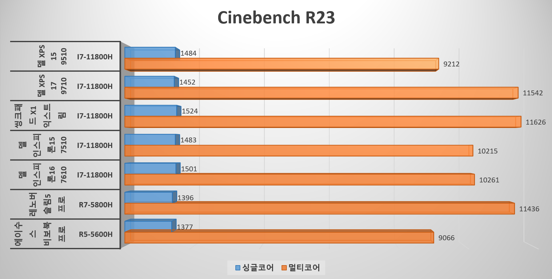 | Cinebench R23 | 9212 | 9749 | 9632 | 11542 |