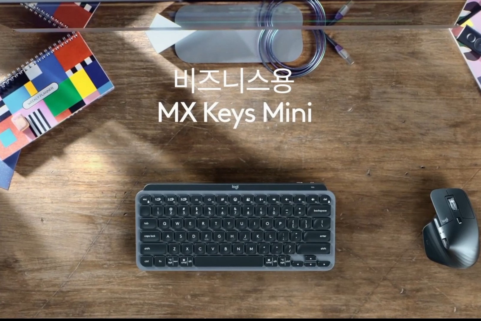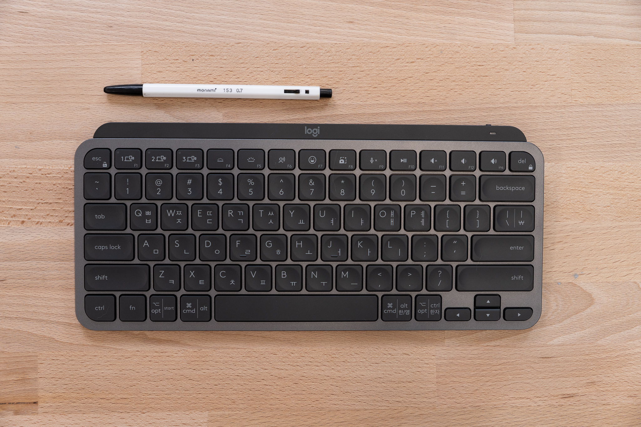"MX Keys 모델과 비슷한 디자인. 펜타그래프만의 얇고 날렵한 느낌을 잘 표현했다."