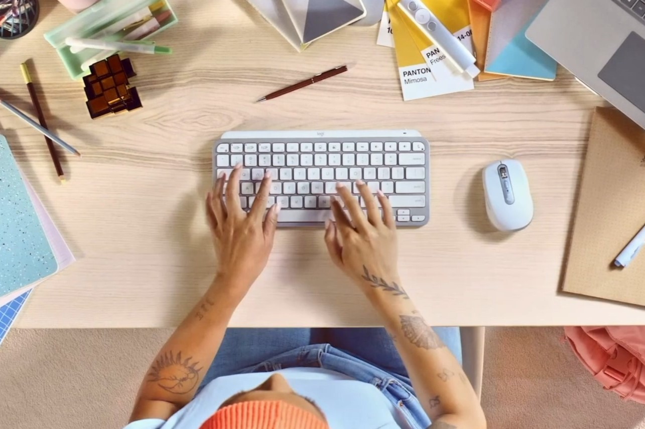 펜타그래프 키보드를 사용하는 이유 중 하나죠. MX Keys 미니는 구분감이 뚜렷한 타건감이면서 소음도 조용한 편이라서 사람이 많은 사무실에서도 눈치 보지 않고 사용할 수 있다는 것이 큰 장점입니다.