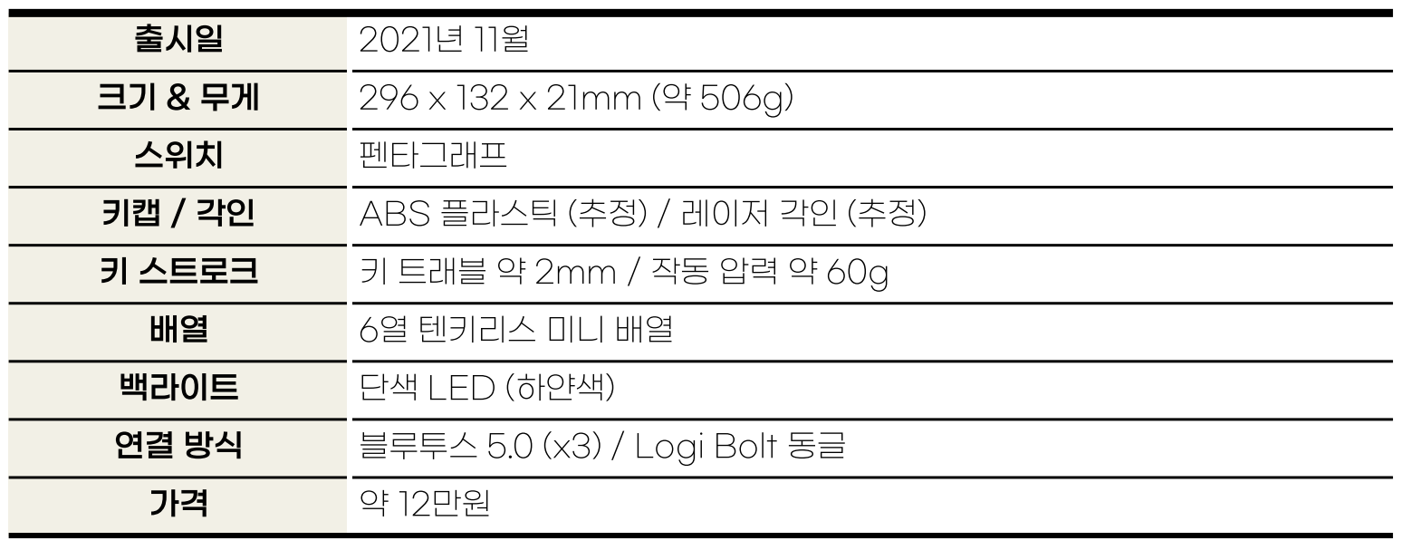 하지만 본격 사무용으로 사용하기에는 넘버패드가 포함된 풀 배열 MX Keys가 나을 것이고, 게임 용도로는 유선 기계식 키보드가 더 유리하기 때문에 "무선 미니 배열 펜타그래프" 방식을 찾는 사람이 생각보다 많지는 않을 거예요. 어찌 보면 소수 마니아들을 위한 제품이랄까요?
