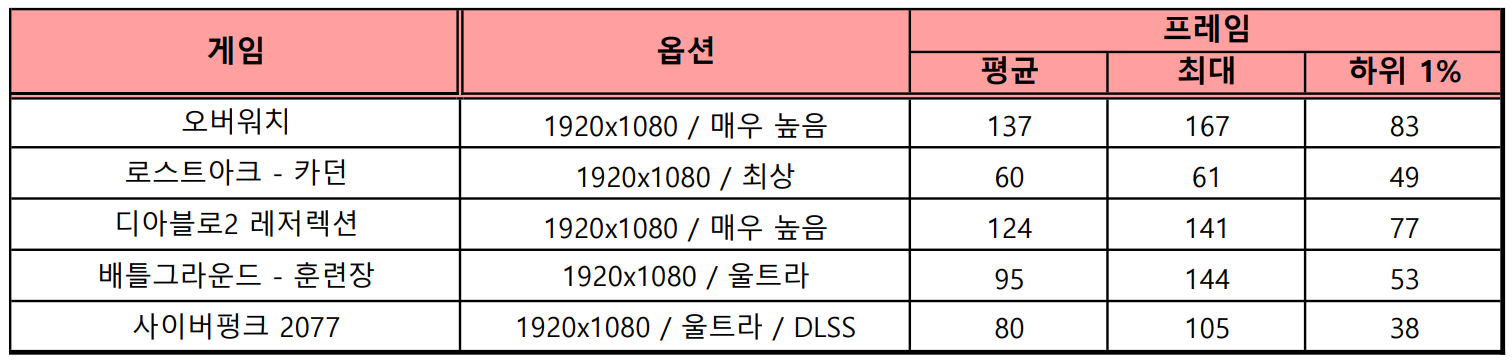 다만 사이버펑크 2077처럼 GPU와 CPU 부하가 동시에 높아지는 타이틀에서는 일시적인 CPU 스로틀링 때문에 프레임 드랍 현상이 가끔 발생할 수 있다는 점 참고해주세요. 보통 GPU 점유율만 높은 슈팅, RPG 게임에서는 프레임 드랍 문제는 없었습니다.