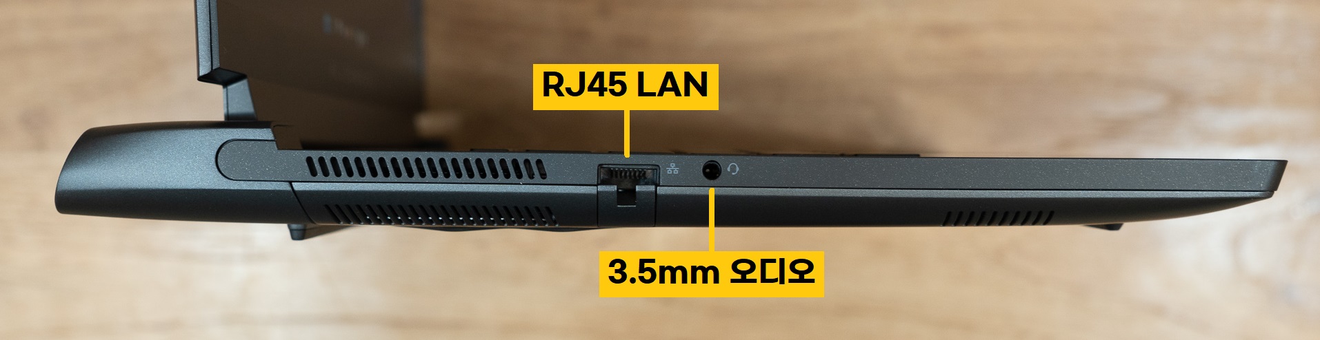 라이젠 노트북이라서 USB-C가 썬더볼트 타입은 아닙니다. USB-C를 통한 DP 출력이 되긴 하는데 PD 충전인 지원되지 않는다는 점이 개인적으로 아쉽게 느껴지더라고요. 물론 에일리언웨어 수준의 게임이 노트북을 자주 들고 외출할 일은 없겠지만, 충전기가 없는 상황에서도 가벼운 작업은 배터리 걱정 없이 할 수 있었으면 더 좋지 않았을까요?