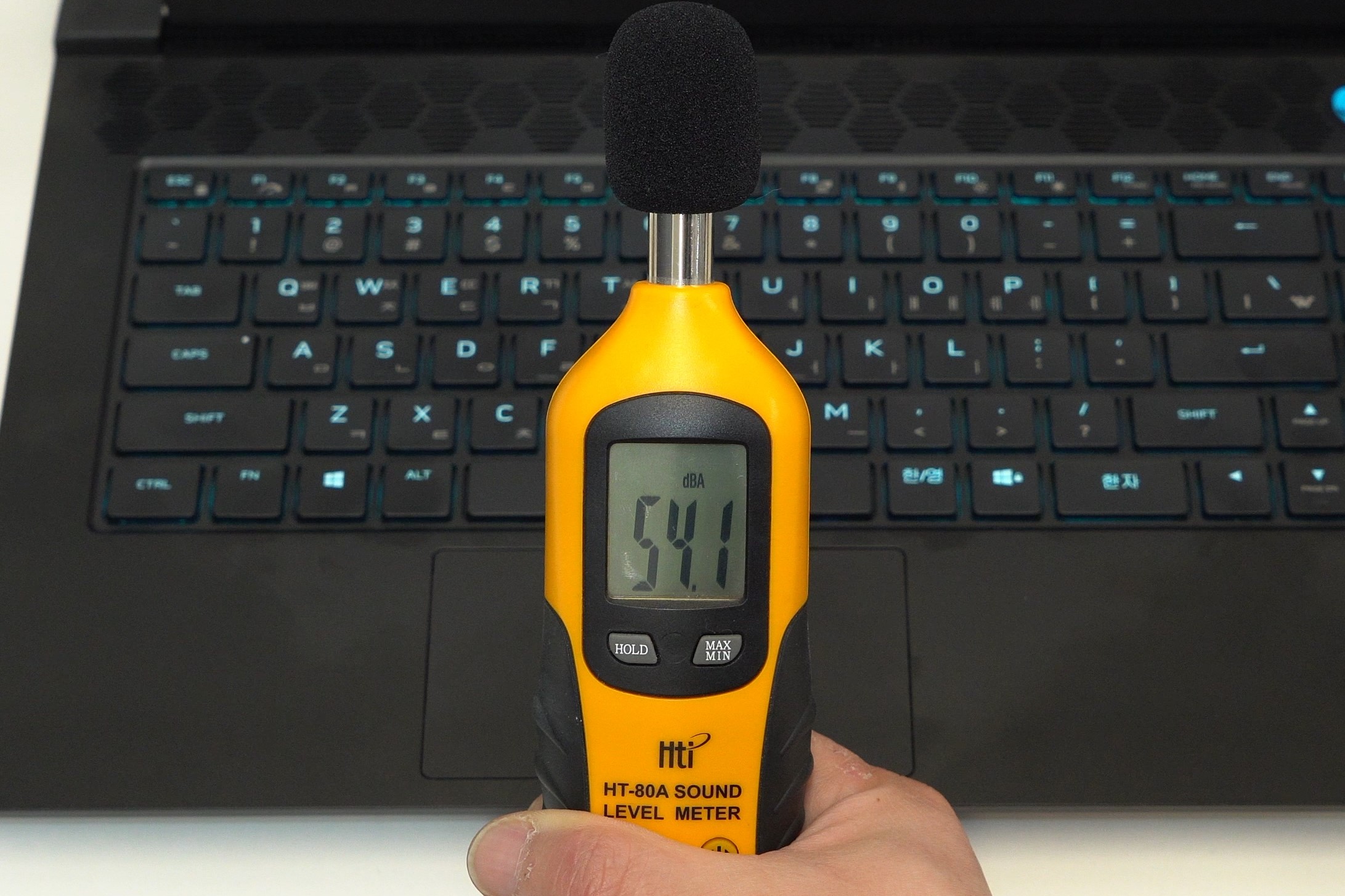 전속력 성능 모드는 팬 소음이 참기 힘들 정도로 시끄럽습니다. 그래서 대부분의 상황에서는 노트북을 균형 모드로 사용하게 되지 않을까 싶은데, 그럴 경우 최대 소음이 54.1dB로 측정됐습니다. 이 정도면 소음이 느껴지긴 해도 대부분의 고성능 게이밍 노트북과 크게 차이 나지 않아서 납득할 수 있는 범주라고 생각해요.