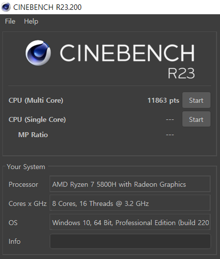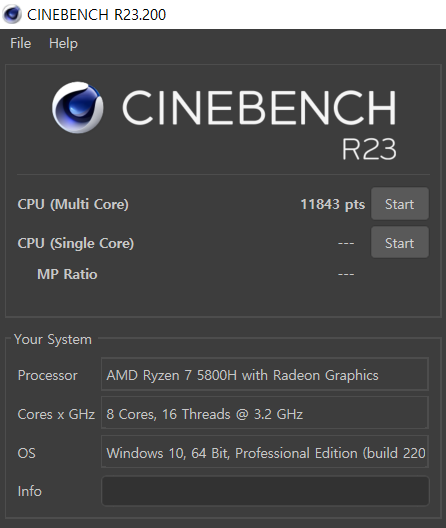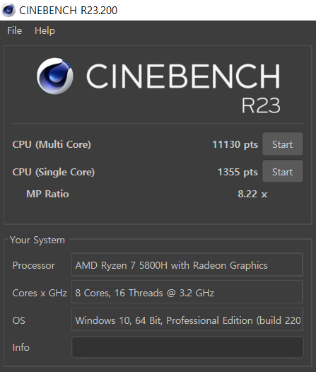 라이젠 4세대 45W급 H프로세서는 45W 정도의 전력만 줘도 기대 성능이 나오기 때문에 에일리언웨어 M15 R5도 기본적인 CPU 성능은 뽑아준다고 평가할 수 있습니다. CPU에 부하가 심하게 걸리는 Cinebench R23 테스트를 8회 반복해도 점수 하락은 없었으니 내부 코어 온도는 높을지언정 성능 유지력도 괜찮고요.