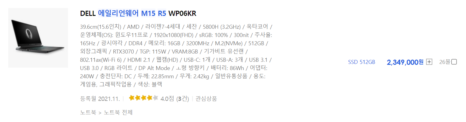 DELL 에일리언웨어 M15 R5 WP04KR (SSD 1TB) : 다나와 가격비교