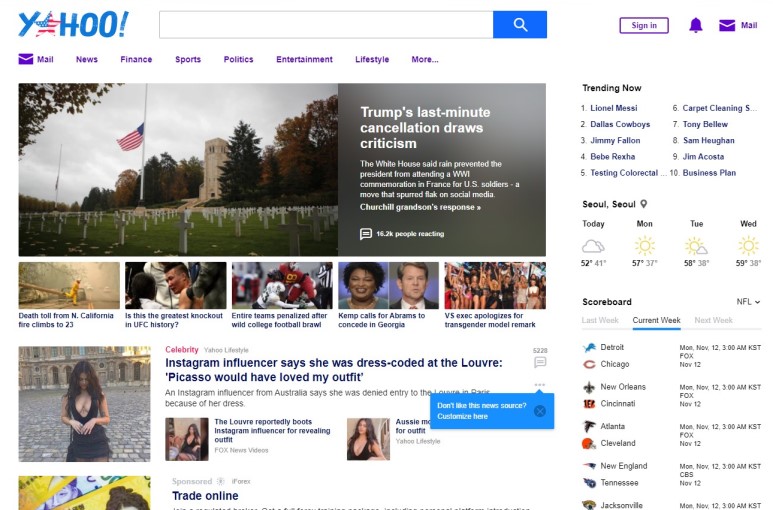아직도 야후 사이트는 남아있습니다. 직접 들어가 보니 뉴스, 금융 정보 사이트처럼 운영되고 있더군요. 미국 뉴스라 내용 자체는 제가 평가하기는 힘들지만, 일단 사이트 최적화가 너무 좋지 않아서 페이지 로딩이 느리다는 단점부터가 확 체감되네요.
