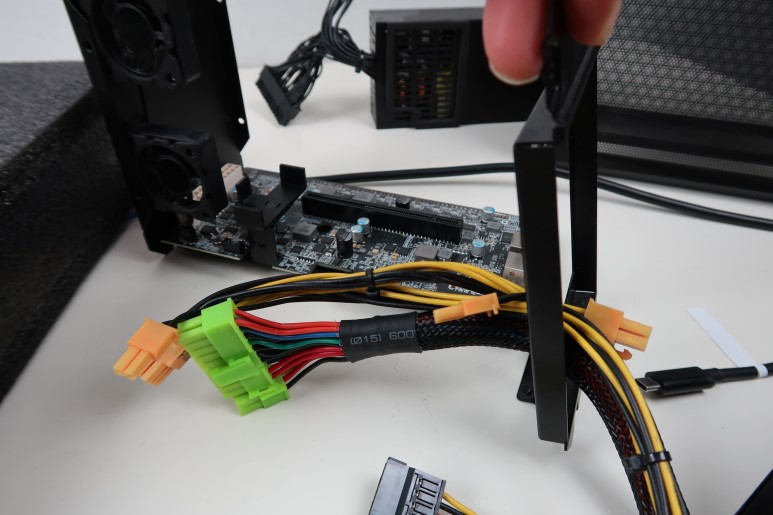 밖에 널려 있는 지저분한 케이블들은 최대한 깔끔하게 접어서 묶어버립니다. 비록 어로스 게이밍박스의 큰 장점 중 하나인 컴팩트함이 사라졌지만, 보다 안정적인 파워 공급이 되지 않을까 싶네요.