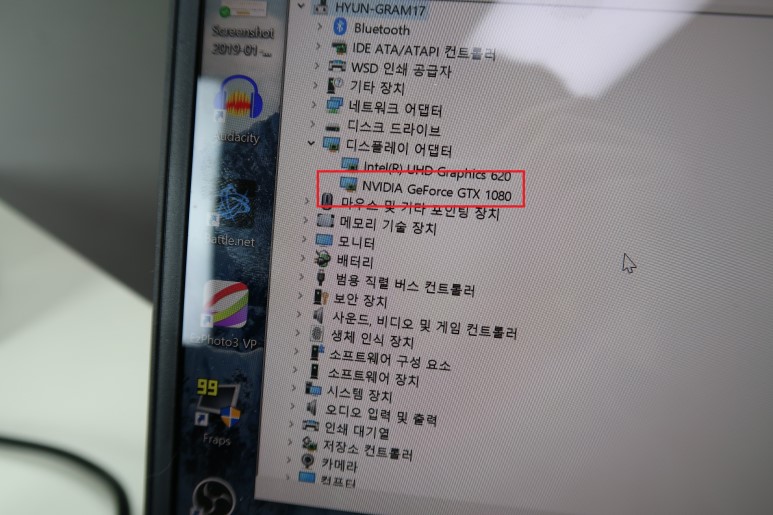 대충 연결해서 다시 노트북에 썬더볼트 케이블을 연결해보니… 다행히도 그래픽카드의 팬이 정상적으로 잘 돌아가면서 노트북 내부에 GTX1080 이 정상적으로 인식됐습니다. 결국 파워만 고장 난 거였군요.