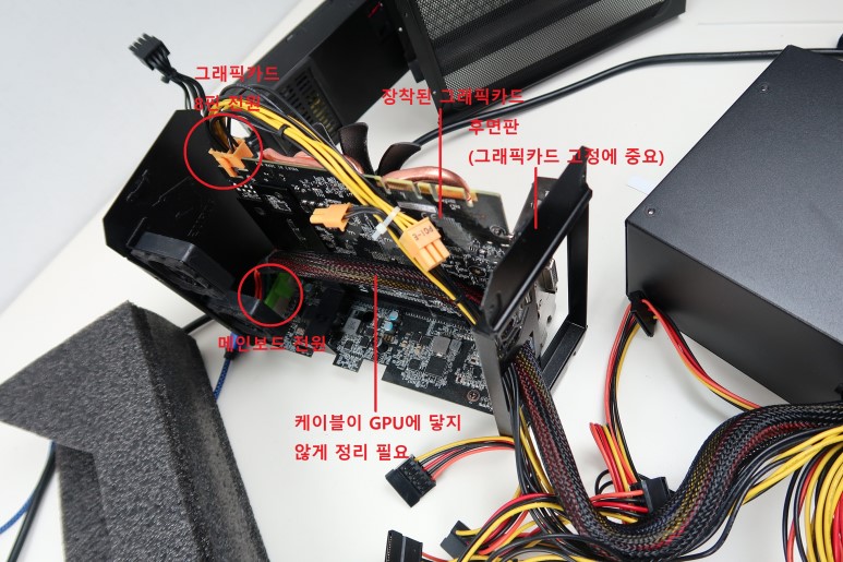 내부 구조는 일반 데스크탑의 PCIe 슬롯과 별 차이가 없다는 것을 확인했기 때문에 케이블 연결은 어렵지 않게 진행할 수 있었습니다.