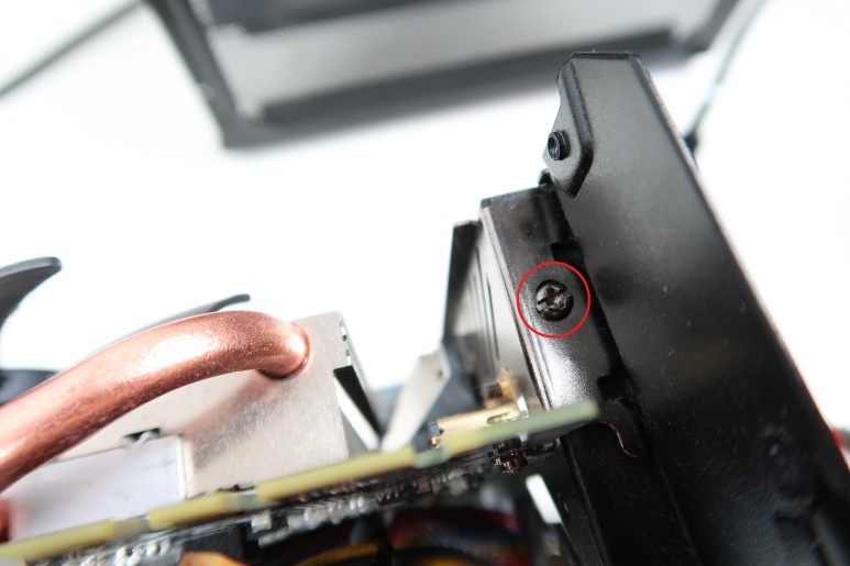 후면판을 하단 지지대 연결부에 맞춘 후 나사를 조여주면 그래픽카드를 고정시킬 수 있습니다. 데스크탑 그래픽카드와 동일하게 나사로 고정시켜주면 됩니다.